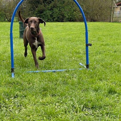 Hoopers ist eine Hundesportart, wo der Hund verschiedene Geräte durchläuft, wie z.B. sogenannte Hoops (Bögen), Tunnel, Tonnen und Gates (Tore) umrundet.