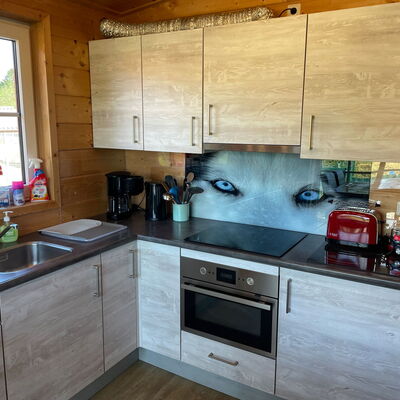 2 Schlafzimmer, 1 Badezimmer, 1 Gäste -WC, Waschmaschine und Trockner, einen offenen Wohnbereich mit Esszimmer und komfortabler Einbauküche (Toaster, Eierkocher, Mikrowelle, Herd, Backofen, Kaffeemaschine, Toilettenpapier, Waschmittel vorhanden), zwei Fernseher, Terrasse, Grill. Die mitgebrachten Hunde kosten nichts extra und haben auf einer großen, eingezäunten (1,50m hoch) Auslaufwiese viel Platz. Die Wolfshütte ist ein Nichtraucherhaus.